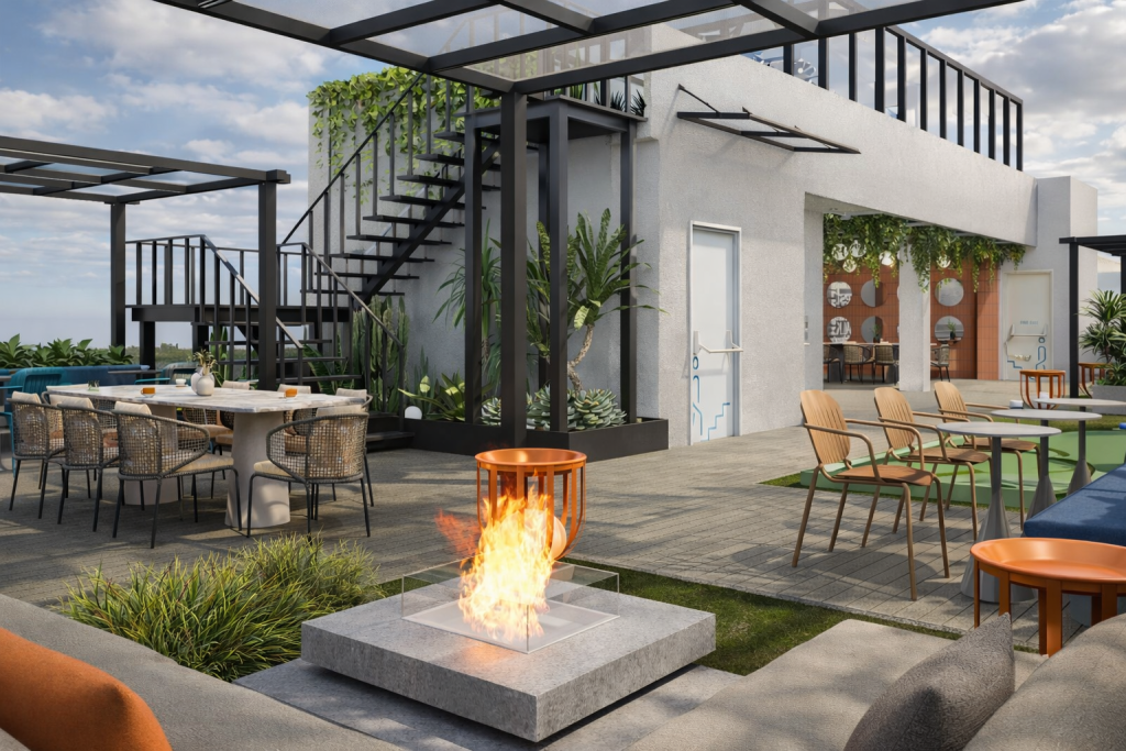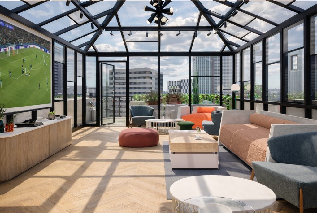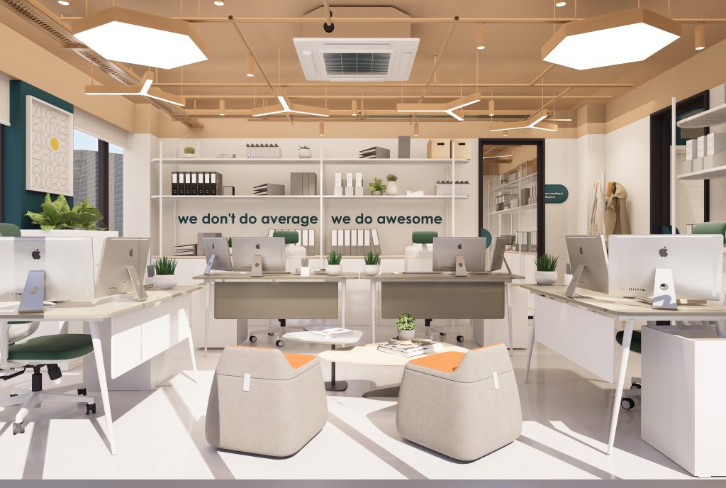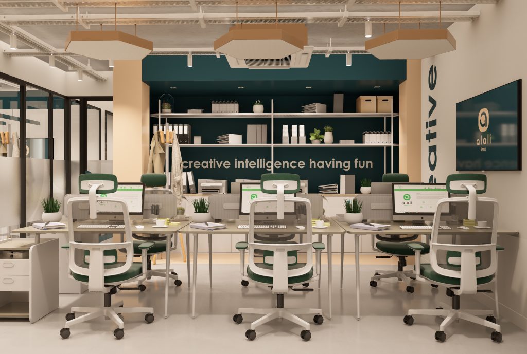 The open-plan layout is enhanced by glass partitions and a permeable spatial organization, allowing natural daylight to penetrate deep into the interior. A diverse program—including a cafeteria, music studio, collaborative workspaces, and a terrace—redefines the workplace as a holistic and experience-driven office ecosystem.
