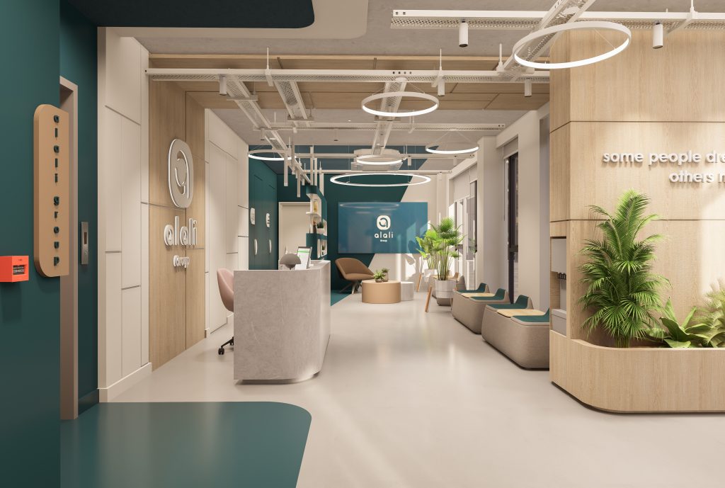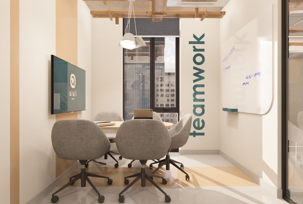 Located in Batumi, Georgia, this headquarters office is conceived as more than a conventional workplace, offering a refined balance between productivity and social interaction. The design narrative is shaped through a carefully curated material palette, where natural wood tones, warm beige surfaces, and bold petrol green accents establish a dynamic yet harmonious corporate identity.